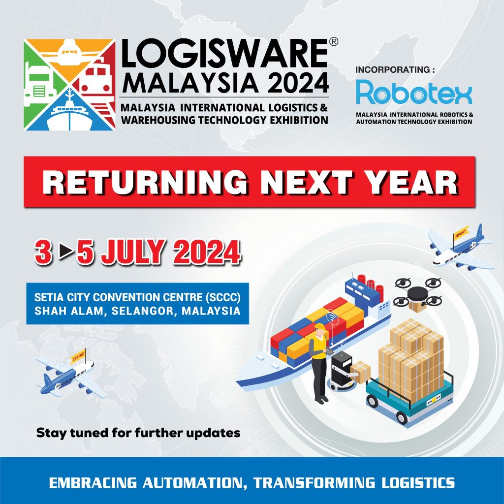 Logisware Malaysia 2024, the Malaysia International Logistics & Warehousing Technology Exhibition returns next year from 3 to 5 July at Setia City Convention Centre Shah Alam,